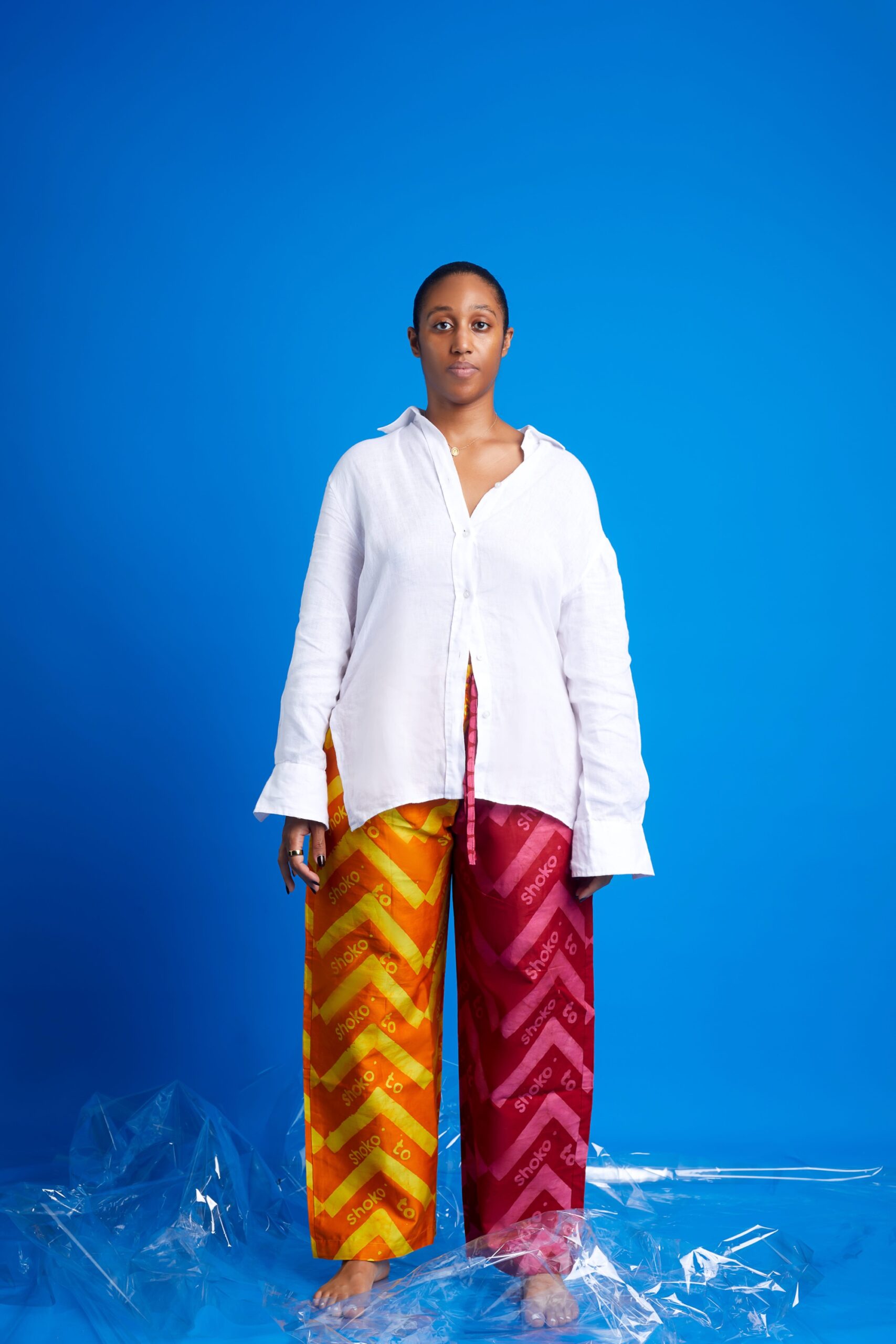 Brown long trousers with Black kente pocket.